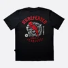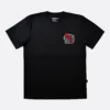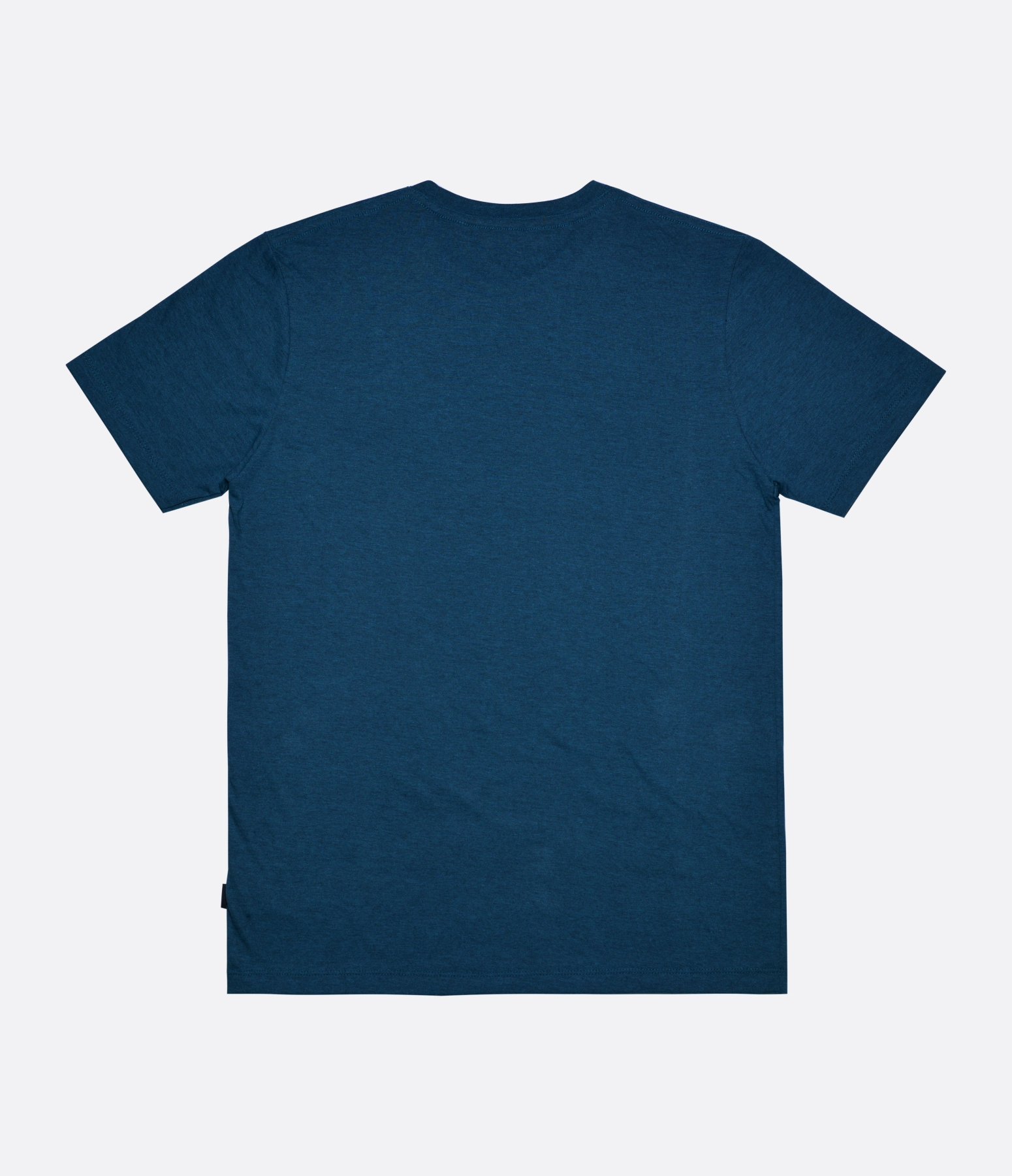 硫化染めしたコットン天竺素材の半袖クルーネックカットソー。衿リブにフライスを採用。左裾にネームタグ、左裾脇にピスネームを配置。